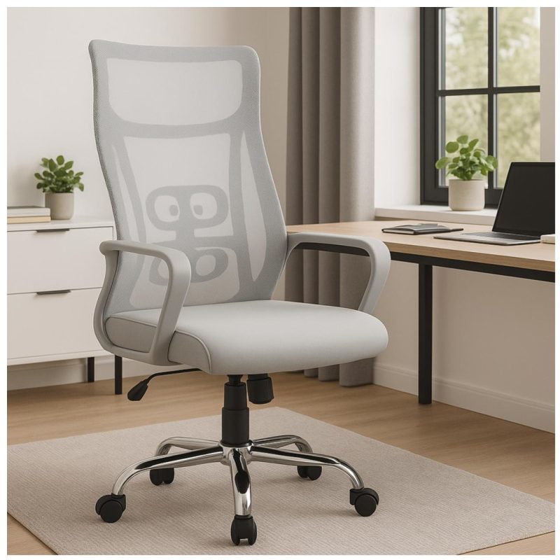 Cadeira de Escritório Ergonômica com Encosto em Tela – Base Cromada